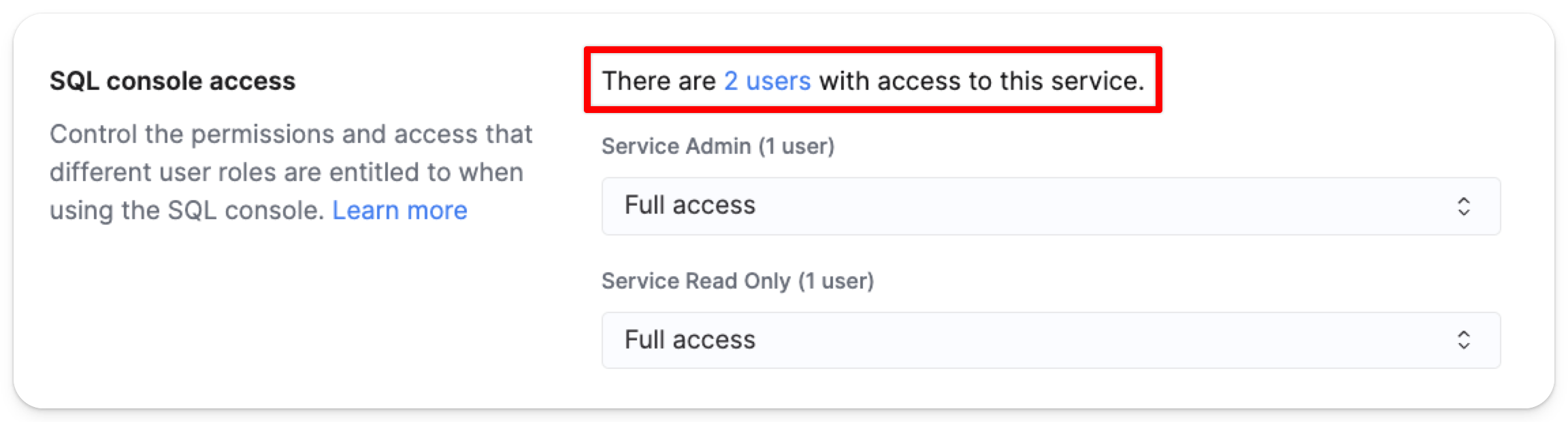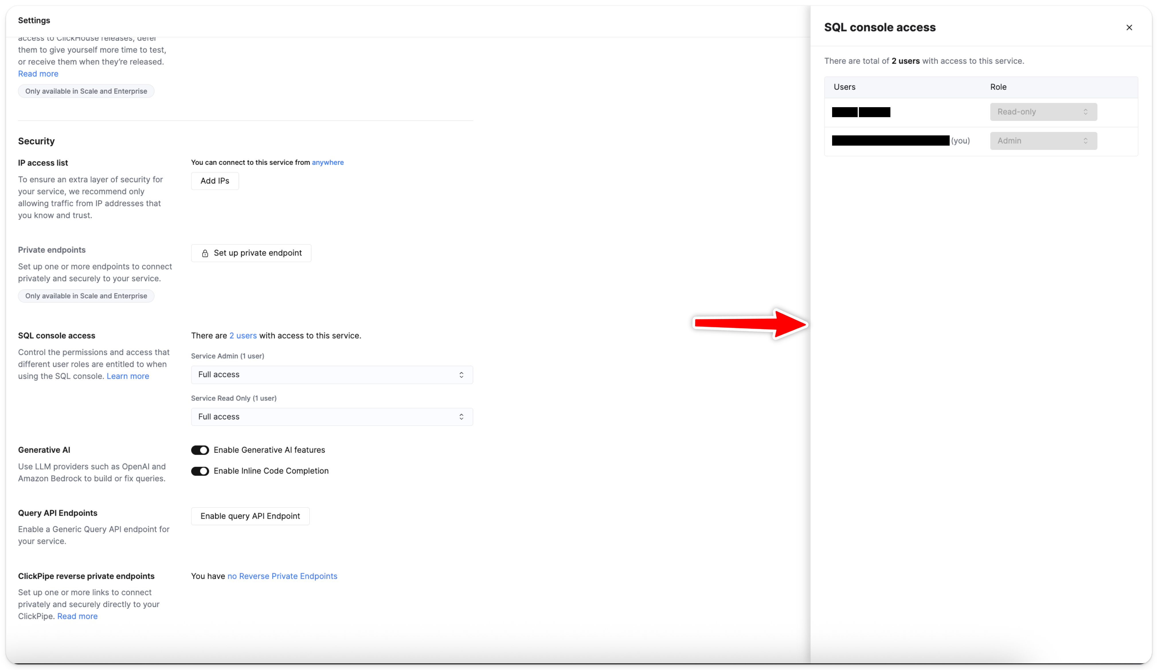 В разделе Security найдите область SQL console access: